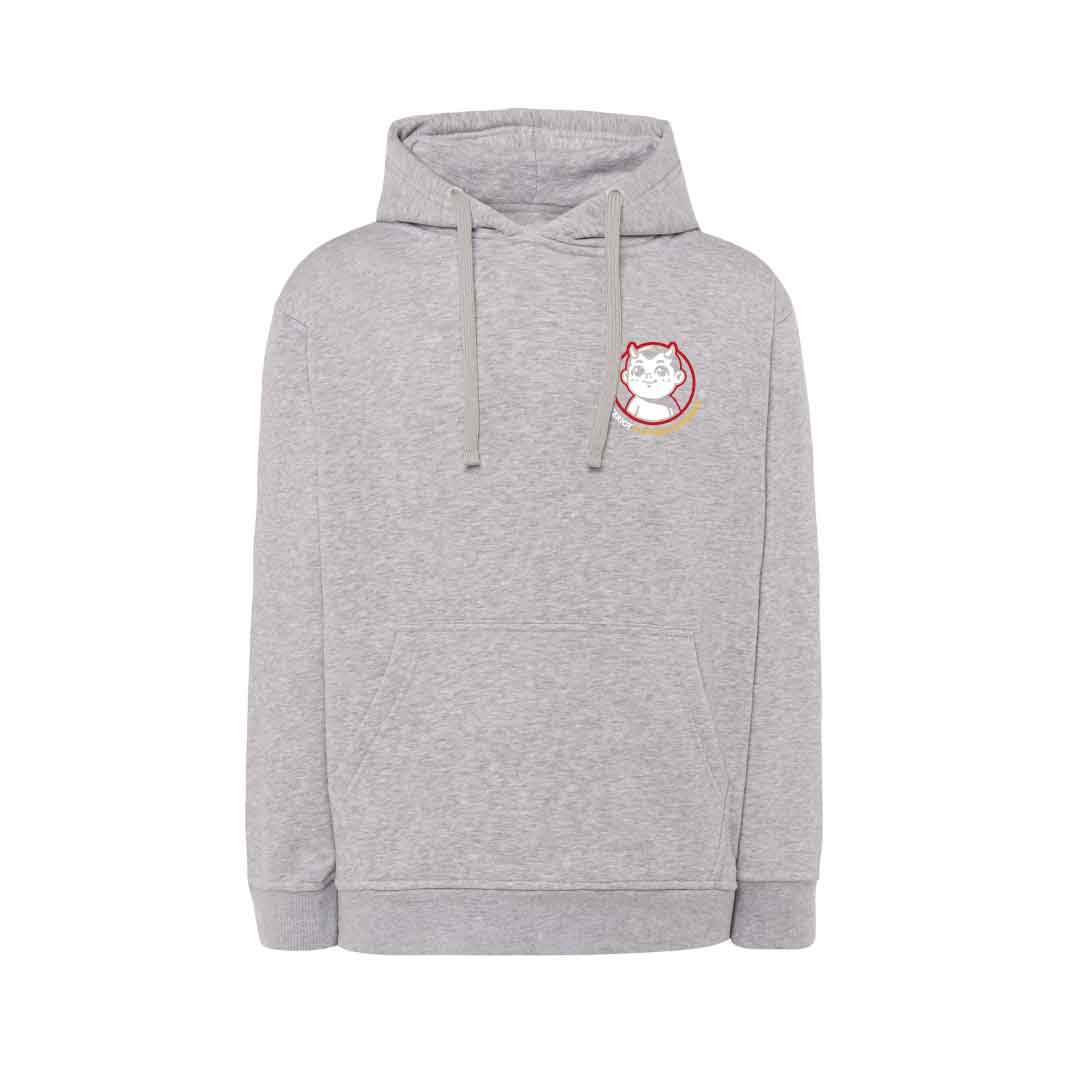 Nuestro querido diablillo luce solemne y suave en esta sudadera clara. Todo un manifiesto de la rebelde ternura.